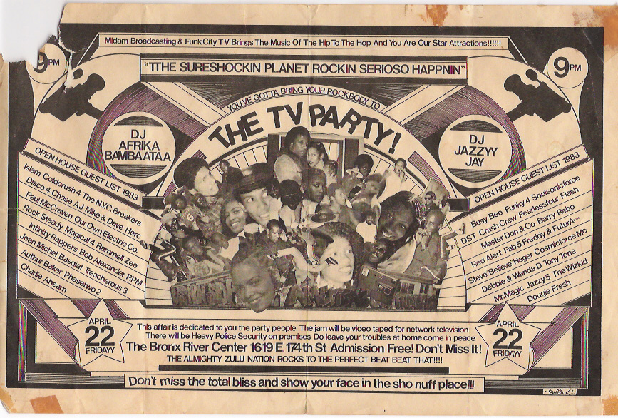 The original hip hop party flyer was the first form of street team marketing. Passed out on street corners and stapled to utility poles these flyers represent the historical record of the birth of hip hop music and culture in New York City.