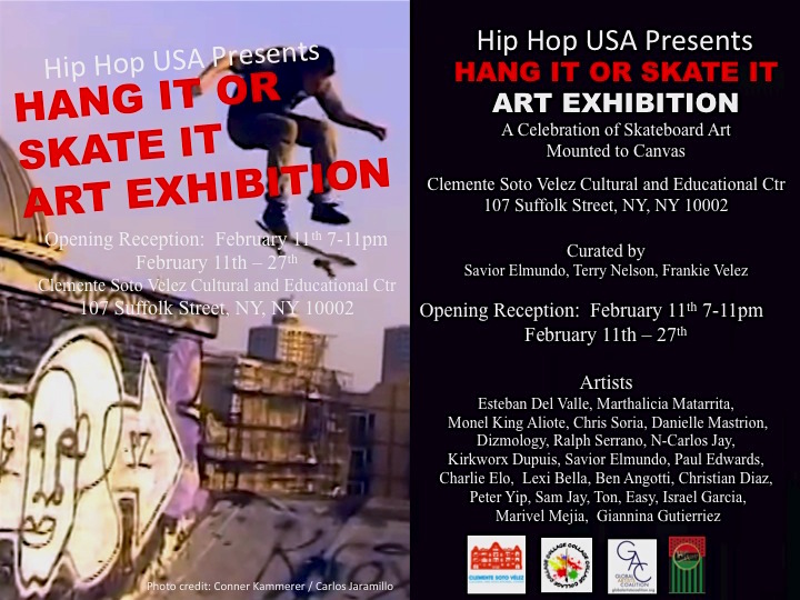 Hang It Or Skate It Art Exhibition at Clemente Soto Vélez Cultural & Educational Center, New York, NY.