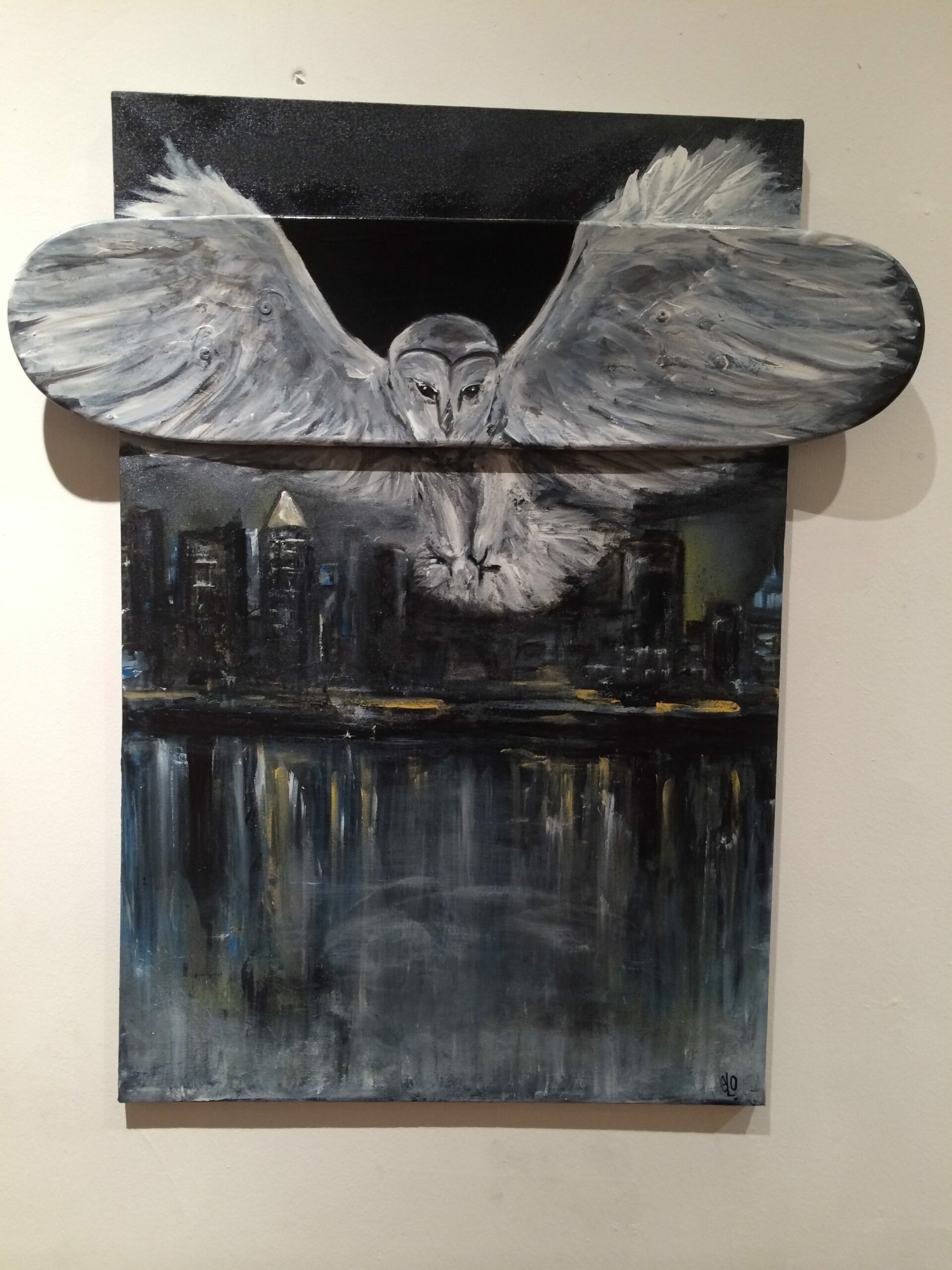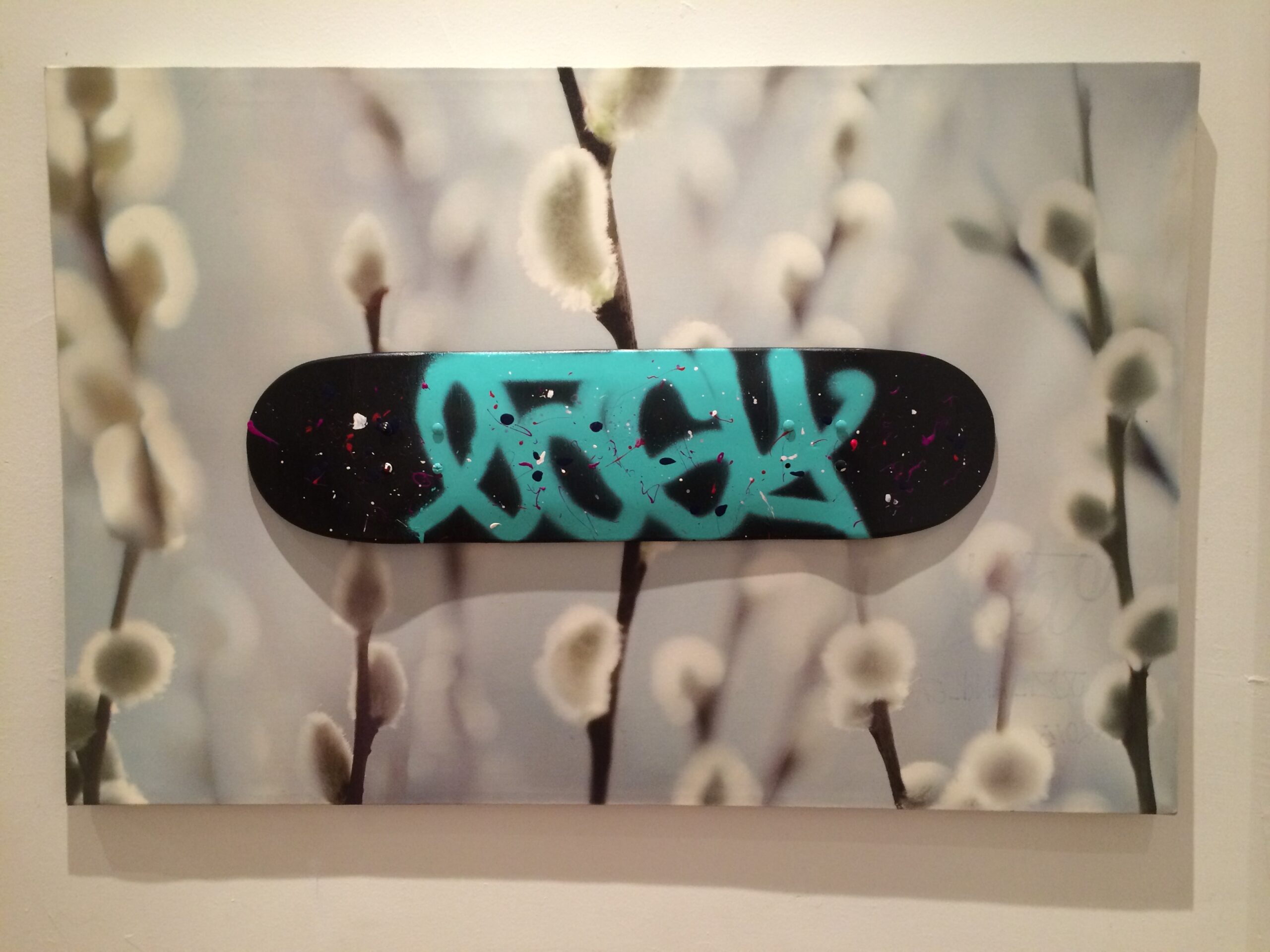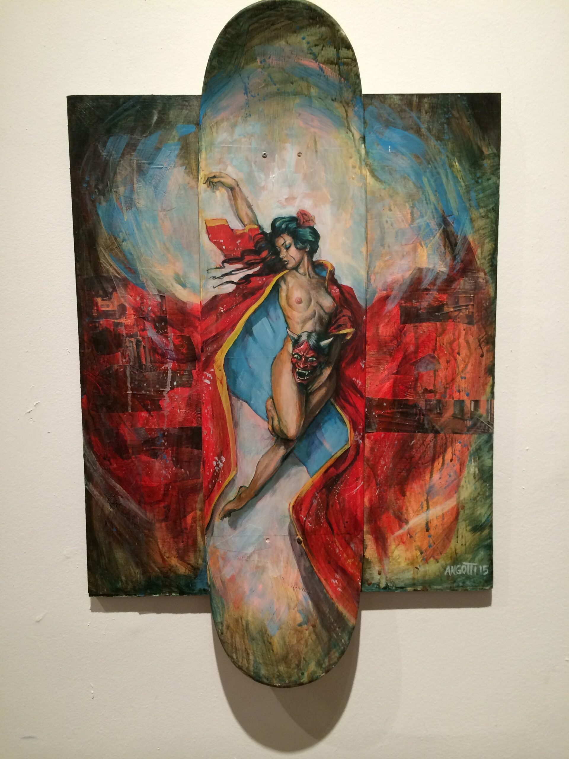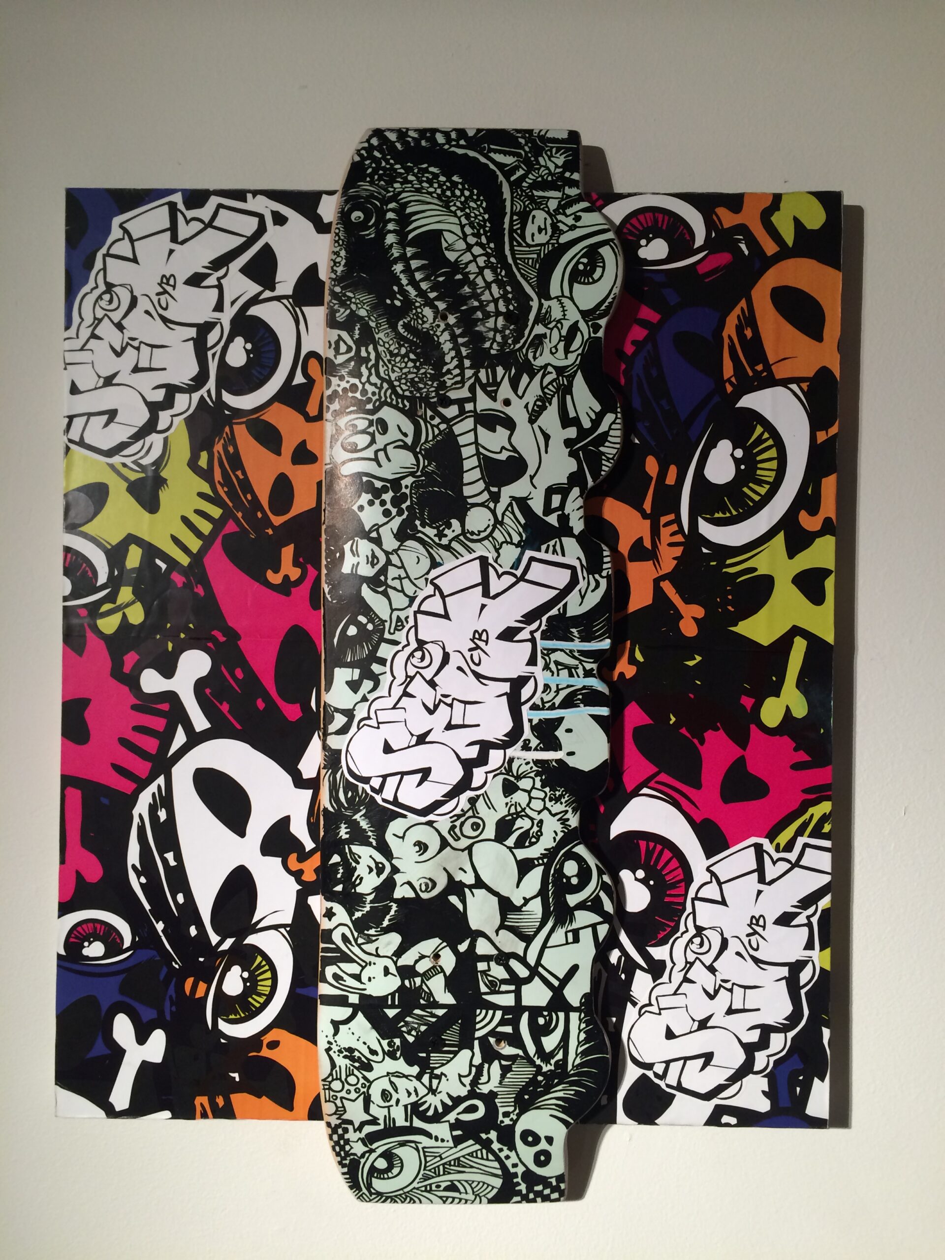 Untitled, by Charlie Elo, 24” x 36” skateboard art mounted on to canvas, 2015.