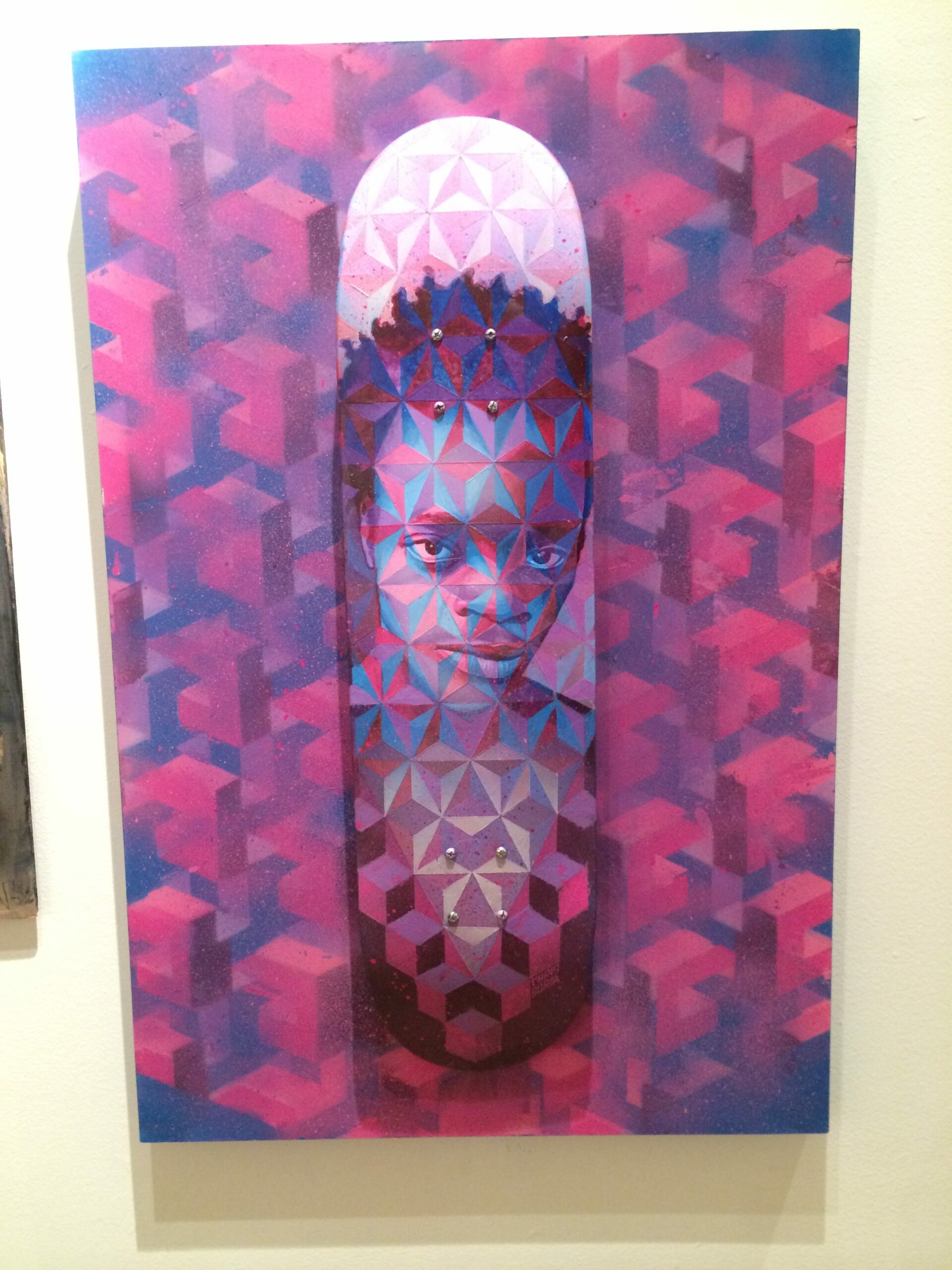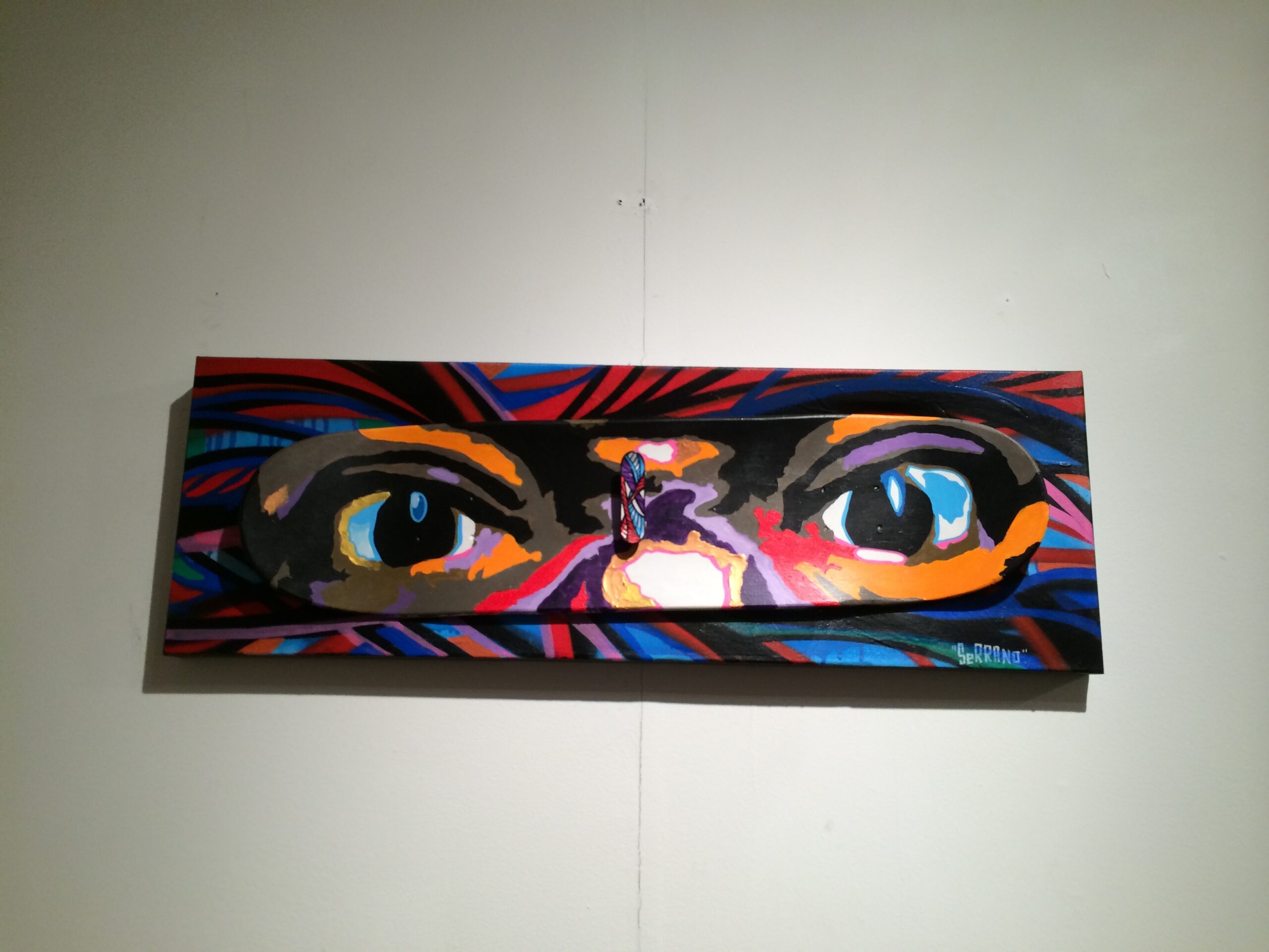 For Seik” by Paul Edwards, 24” x 36”, skateboard art mounted to canvas