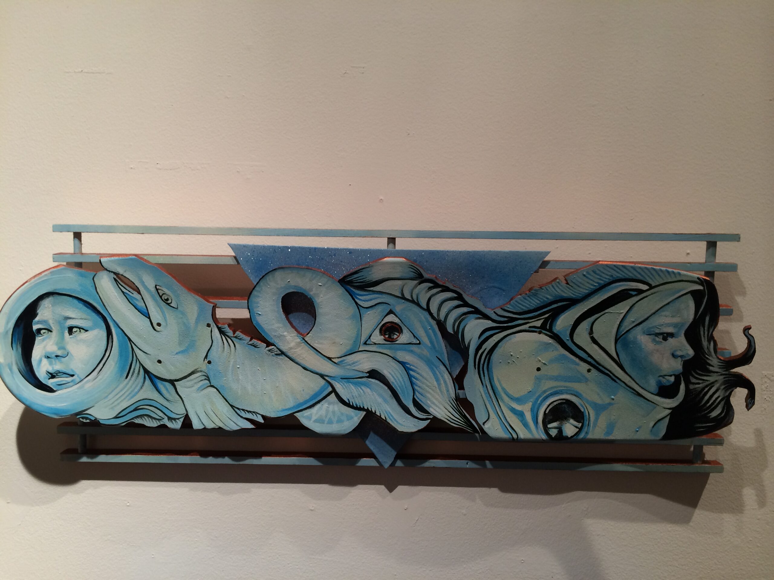 “Subzero Unknown Sea and Space” by Marthalicia Matarrita, machine carved skateboard by hand, painted, 2015.