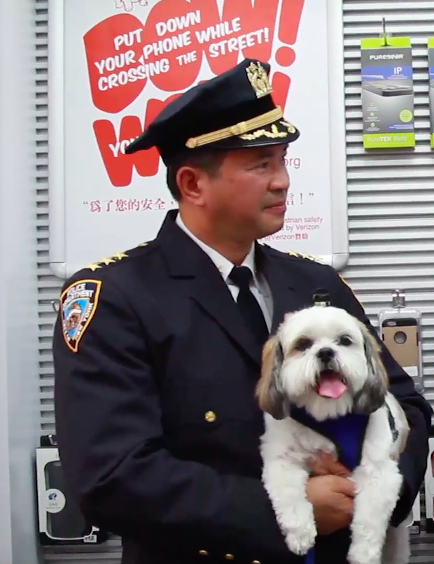 Thomas Chan, NYPD Chief of Transportation and spokesperson for New York City’s Vision Zero Traffic Safety Campaign adopted his dog Humphrey from Animal Haven Animal Shelter in New York City in 2009. A notable gesture for sure, but ever since then the Chief Chan has put Humphrey to work, tweeting out traffic safety messages for New York City’s Vision Zero and it hasn’t stop there…